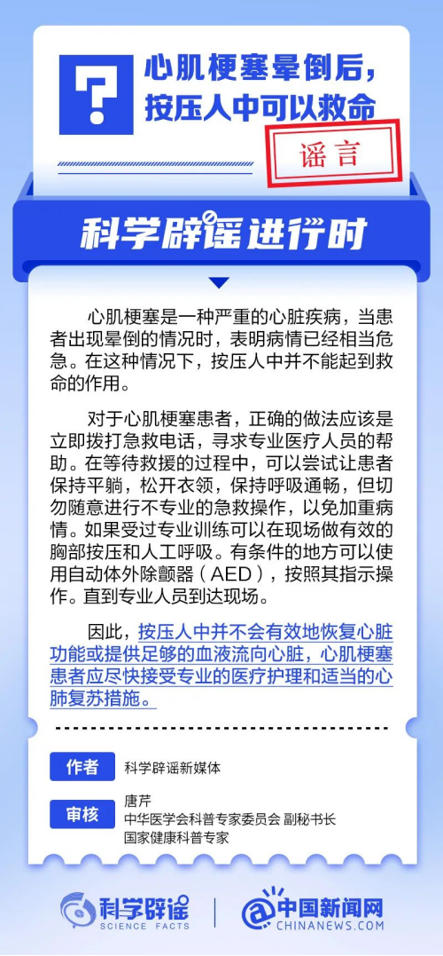 心肌梗塞晕倒后,按压人中可以救命?