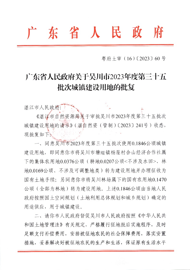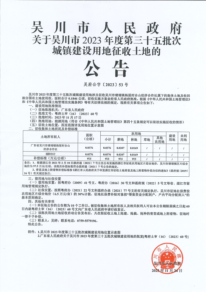 月神直播 关于吴川市2023年度第三十五批次城镇建设用地征收土地的公告