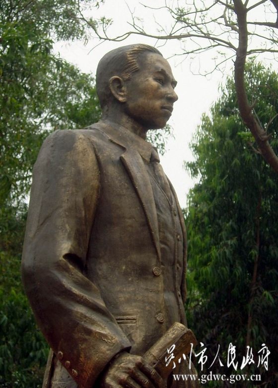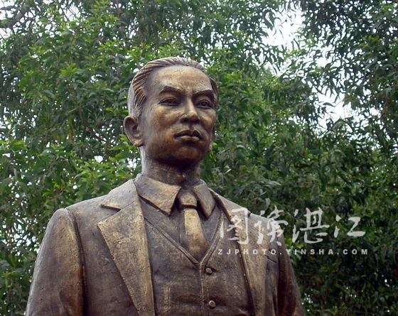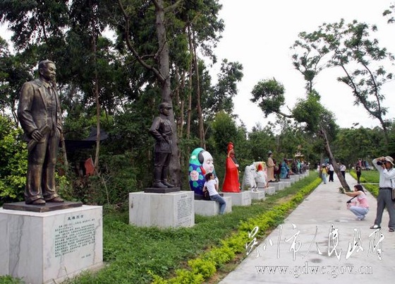 屹立于“吴川民间雕塑园”里的庞雄塑像(左一)(资料图片)