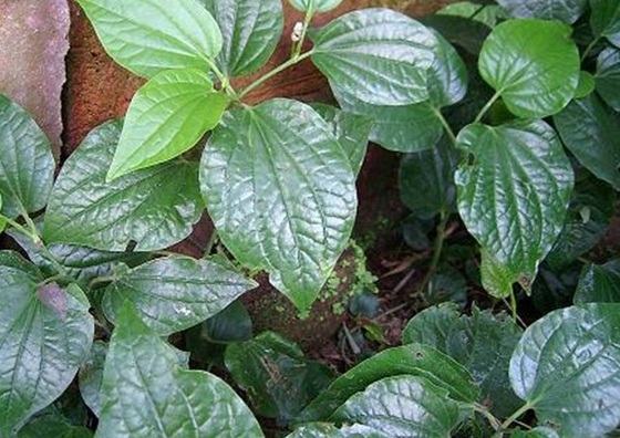假蒌是胡椒科植物,一般生长在村边的竹林缘,或和竹子混生在一起。它的别名有:假蒟、蛤蒌、山蒌等。它的叶子跟胡椒的叶子很相似,叶面光亮有革质,有一种特异的香味。它的花白色,由多数的小浆果集合而成圆柱状,长1.5~3.5厘米,直径0.3~0.5厘米,也有特异香气。