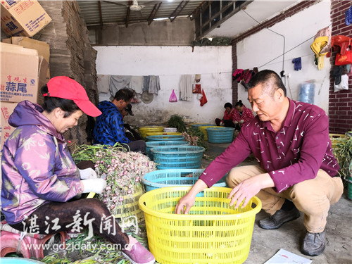 “这是最好的原料蒜,蒜头蒜骨的纤维比绝大多数外地蒜种都要细嫩,口感非常好。”肖观生解释,作为腌制原料的大蒜,种植期约90天,远比蔬菜用蒜要长,单价也贵得多。当天收蒜的价格为每斤5元,比去年便宜了不少。“可惜到了季末,没有多少本地蒜收了。”
