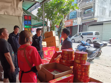 截至4月3日,累计出动执法人员40人次,检查零售点42个,检查重点场所11家次,发现隐患问题22项,成功取缔非法储存烟花爆竹窝点9个,查处没收烟花爆竹305箱,涉案当事人已交由公安机关进一步处理。