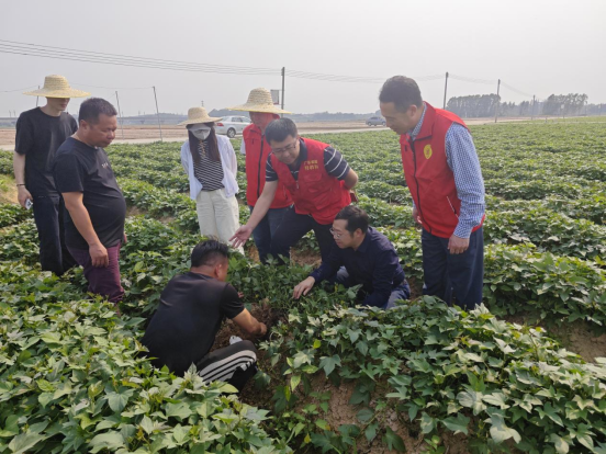 下午,刘鹏飞博士一行继续前往长岐镇荣丰农业公司、粤华种植有限公司实地调研农作物种植情况。在荣丰农业公司的番薯种植基地博士们仔细查看番薯生长状况,结合土壤性质,就如何科学施肥、合理灌溉给出专业建议。