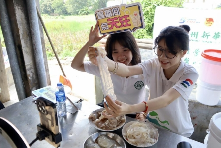 7月15日,广州新华学院法学院良美海蜇e法突击队在湛江吴川大山江街道良美村开展的助农实践活动进入关键一天。以当地特色海蜇产业为核心,队员们把直播间搬到大山江良美村的海蜇加工厂,用全链条服务为乡村振兴注入青春动能,让这座村庄的“海洋馈赠”在电商浪潮中焕发新生。