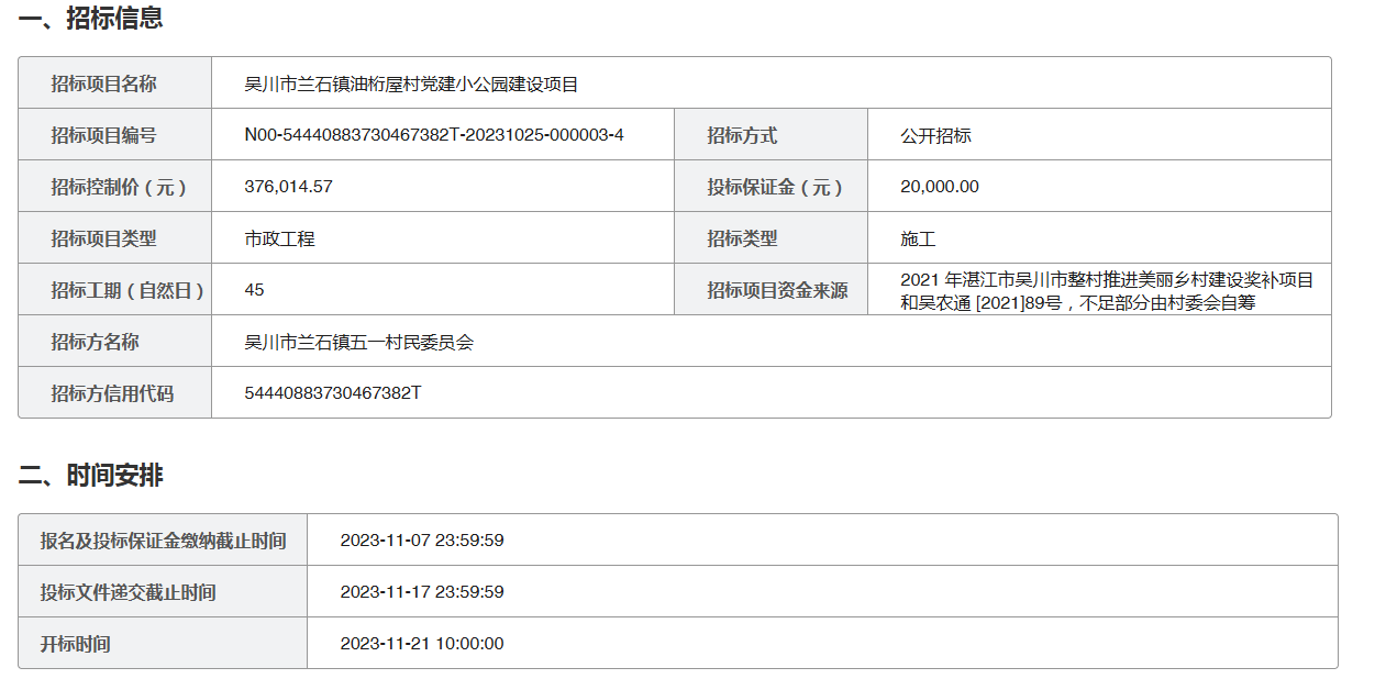 吴川市兰石镇油桁屋村党建小公园建设项目招标公告