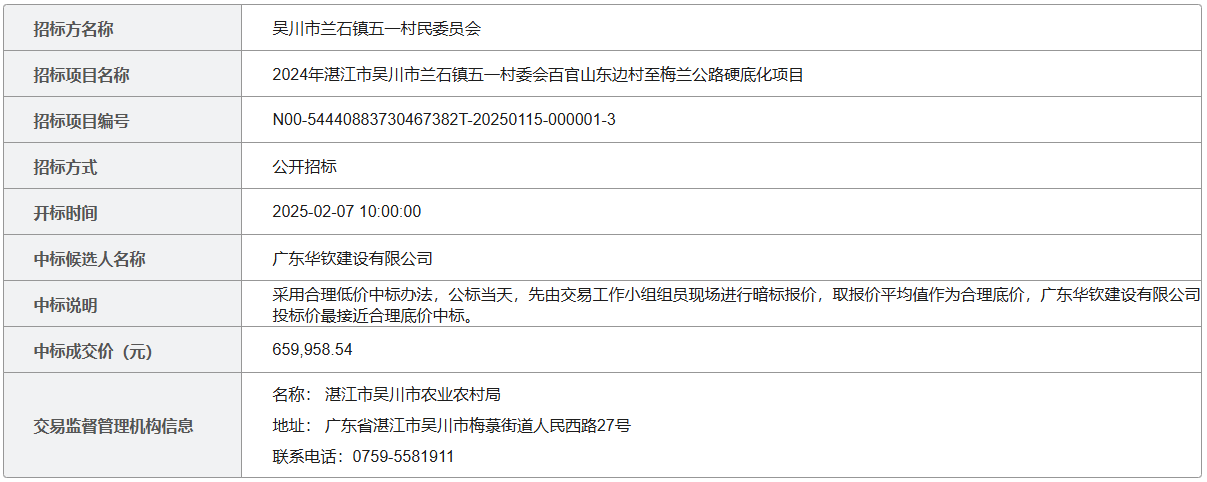 2024年湛江市吴川市兰石镇五一村委会百官山东边村至梅兰公路硬底化项目