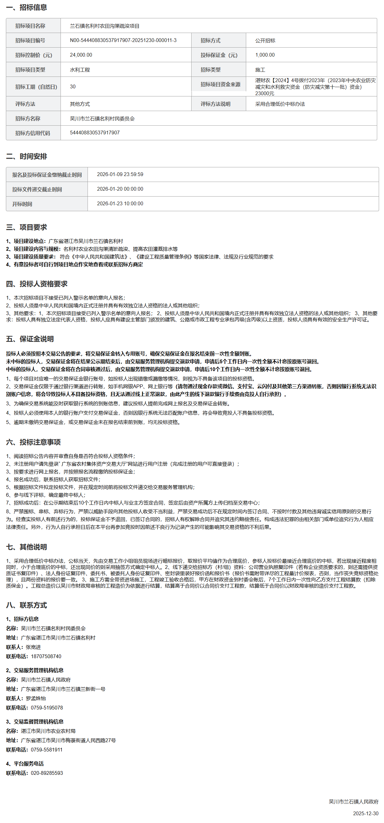 兰石镇名利村农田沟渠疏浚项目招标公告