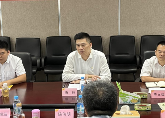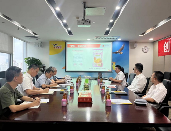 参观后,鹰金钱公司江志兴部长主持召开座谈会。调研组一行观看了鹰金钱公司发展历程宣传片,江志兴部长详细介绍了鹰金钱公司在广州对口帮扶清远、梅州和湛江等地乡村振兴帮扶工作情况和“百千万工程”地标美食打造成效。王村港镇驻镇帮镇扶村工作队廖世雄队长介绍了驻镇帮扶开展情况、驻镇当地优质农产品和驻镇帮扶需求。广州市政协机关党委陈伟明专职副书记肯定了鹰金钱公司取得的企业经营优异成绩和乡村振兴成效,践行了国企使命担当,期望未来鹰金钱公司能在吴川市王村港镇开展乡村振兴帮扶工作。