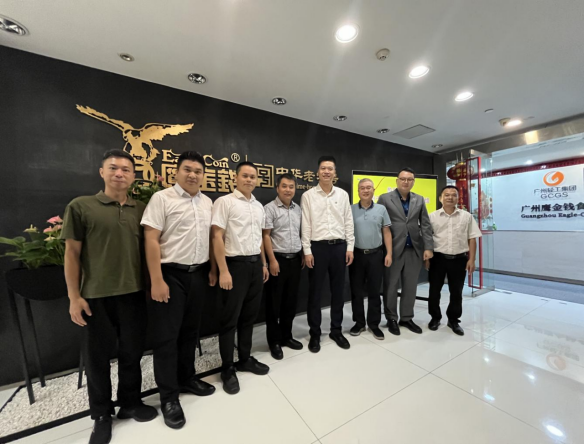 11月15日,为进一步拓展乡村振兴驻镇帮扶措施和成效,广州市政协机关党委专职副书记陈伟明率王村港镇驻镇帮镇扶村工作队和乡村振兴产业顾问一行到广州鹰金钱食品集团有限公司开展乡村振兴帮扶调研。广州鹰金钱食品集团有限公司副董事长、总经理唐毅,市场部部长陈义福,预制菜部部长江志兴接待了调研组。