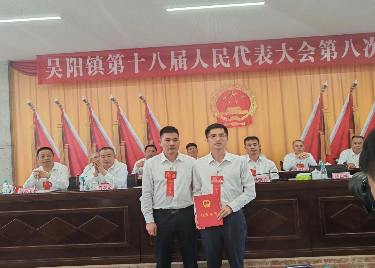 大会上,代表们对吴阳镇2024年的工作成绩给予了肯定,通过了各项决议,票决出了5项吴阳镇2025年民生实事项目,依法选举了钟双鸣同志为吴阳镇人民政府镇长,镇人大主席杨康林为新当选的镇长颁发当选证书。
