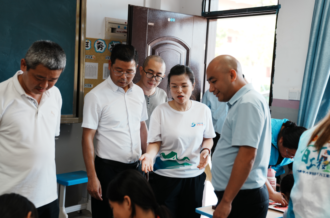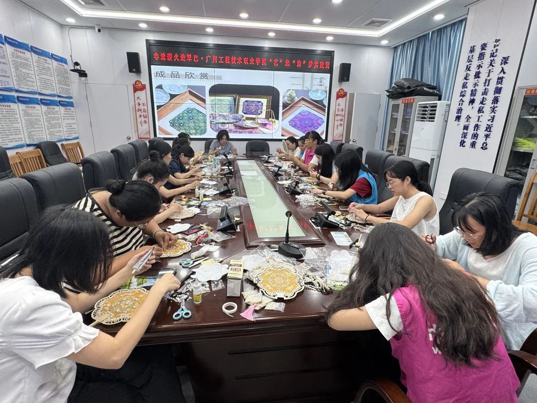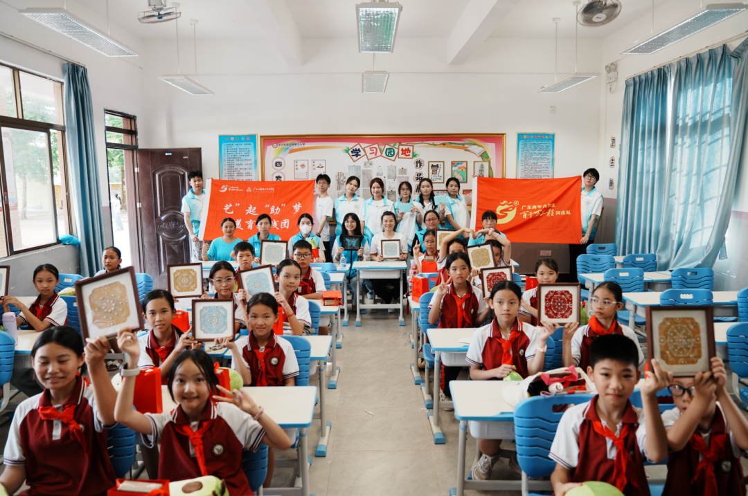 实践团将非遗手工技艺融入乡村教育,通过“小手艺”完成“大传承”,让传统文化在年轻一代中焕发新生。针对乡村儿童,团队开发了“非遗趣味课堂”系列课程,超过200名乡村学生参与。在志愿者的指导下,孩子们学习制作宋锦画、螺钿画等传统手工艺。让孩子们在动手实践中潜移默化地理解工匠精神。当日,共青团吴川市委员会书记陈志健带队调研,与师生一同参与课堂实践,对该校师生团队给覃巴送教下乡表示感谢,并对课程设计、课程内容给予高度评价。
