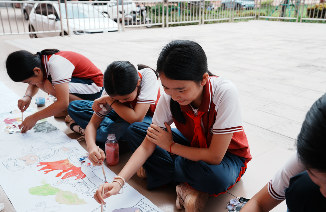 团队深入调研发现,覃巴镇的留守儿童占比74.5%,这些孩子不仅面临安全教育缺失的问题,更因长期缺乏父母陪伴而容易产生心理困扰。实践团特别设计了“十米解压长卷”集体创作活动。在志愿者的引导下,136名孩子用画笔表达内心情绪,用非语言表达方式有效降低了心理防御,通过艺术疗愈手段建立起常态化心理干预机制。