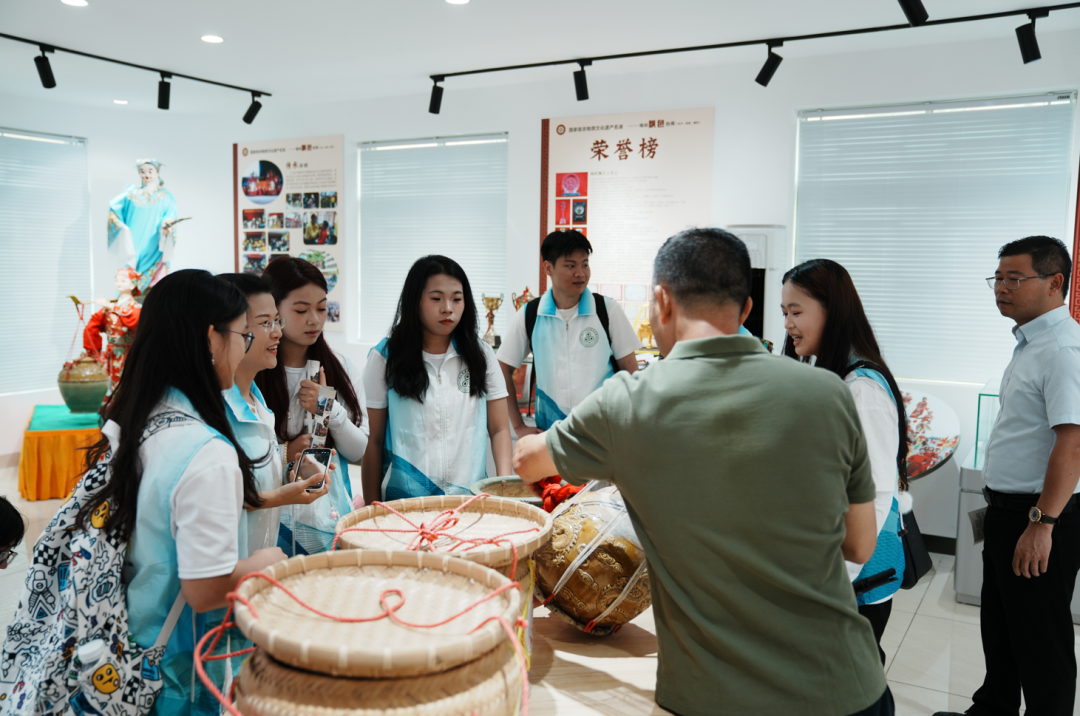 实践团深入梅岭飘色艺术团,深入学习国家级非遗“吴川飘色”的艺术精髓,跟随国家级非遗传承人探索“空中戏剧”的奥秘。在角色创编方面,掌握了“一色一故事”的叙事规律,学习如何将神话传说、历史人物转化为高台造型;在视觉呈现方面,重点研习了“色梗”隐藏技法、戏服剪裁要领,以及独特的“三色开面”妆容画法。通过学习,团队积累了丰富的创作素材,为后续专业学习和作品的创新奠定了扎实基础。