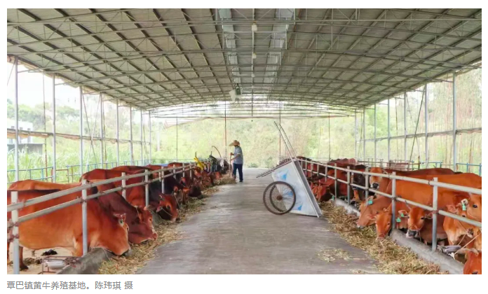 依托那梧村“吴川黄牛”传统养殖基础,覃巴镇建立“三产联动、镇村共兴”产业发展共同体。扶持本土龙头企业梧聚农牧公司,推广“公司+基地+专业合作社+农户”合作经营模式,带动成立专业合作社,“订单式”扶持农民养殖户300多户。目前基本形成集养殖、屠宰、加工、销售于一体的完整产业链条。