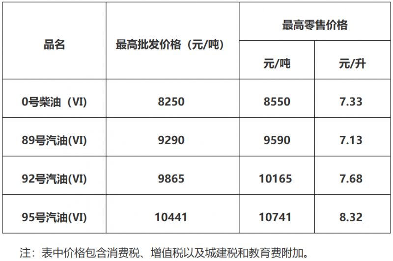 广东省汽、柴油最高销售价格表