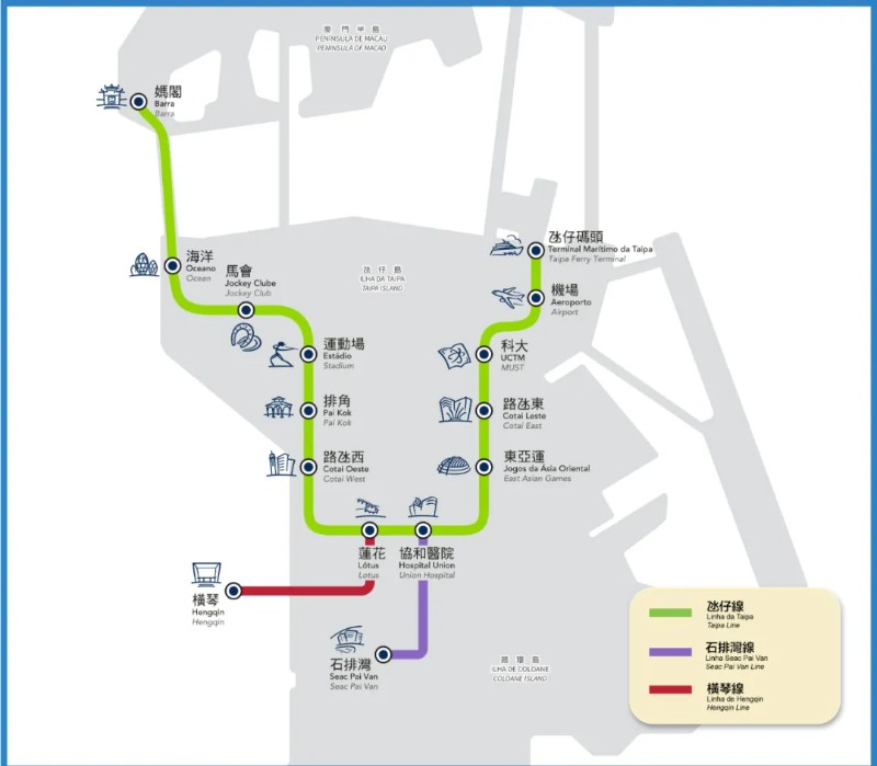 横琴线连接澳门与横琴粤澳深度合作区,全长约2.2公里,设有莲花站和横琴站两个车站,全程行车时间约2分钟,班次约6分钟一班。
