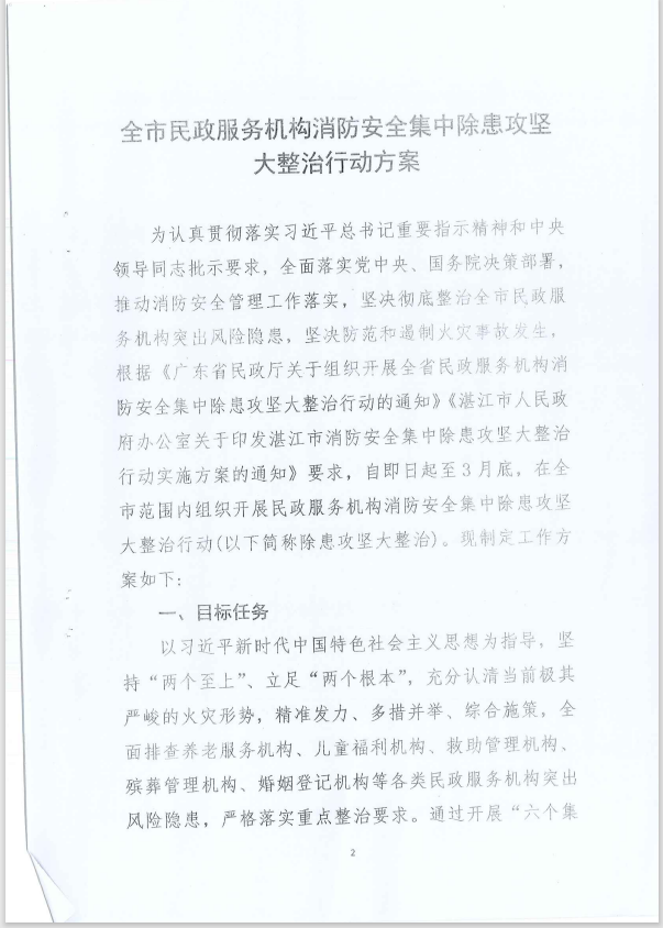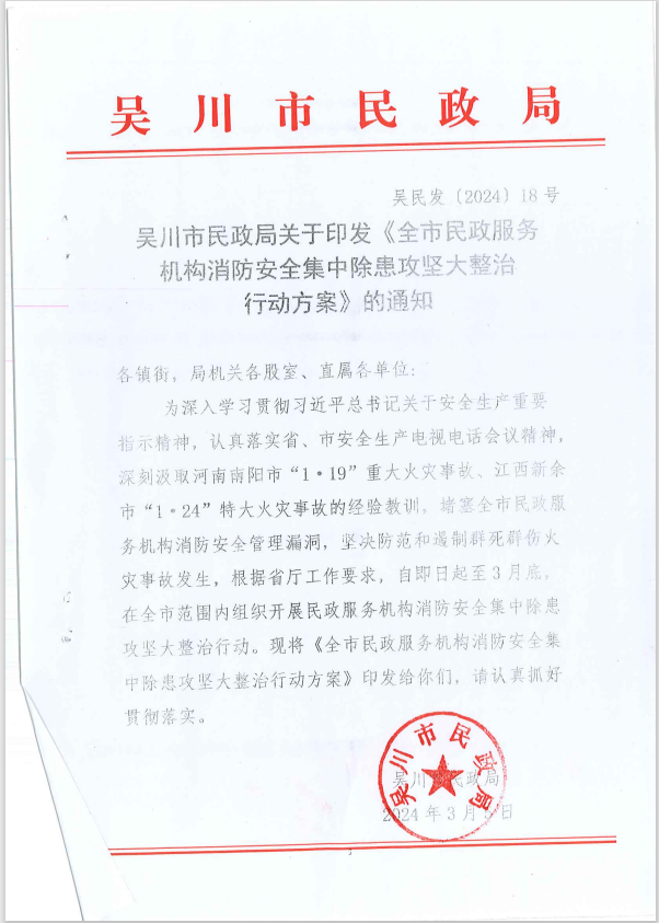 吴川市民政局关于印发《全市民政服务机构消防安全集中除患攻坚大整治行动方案》的通知