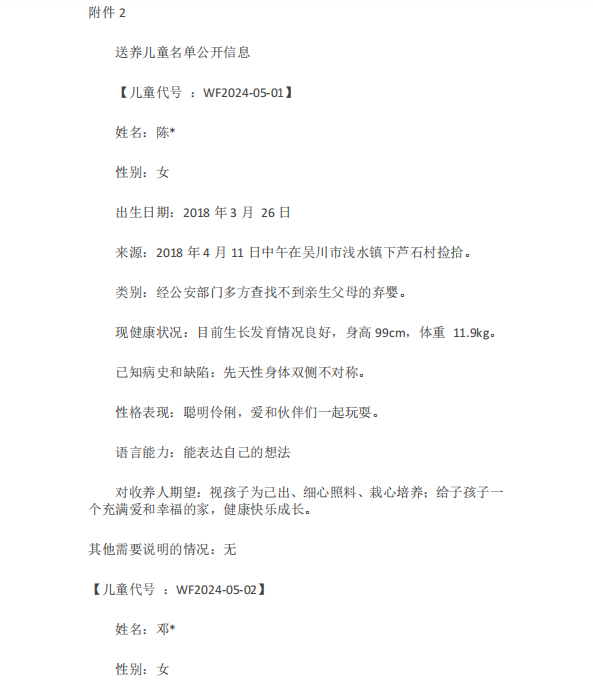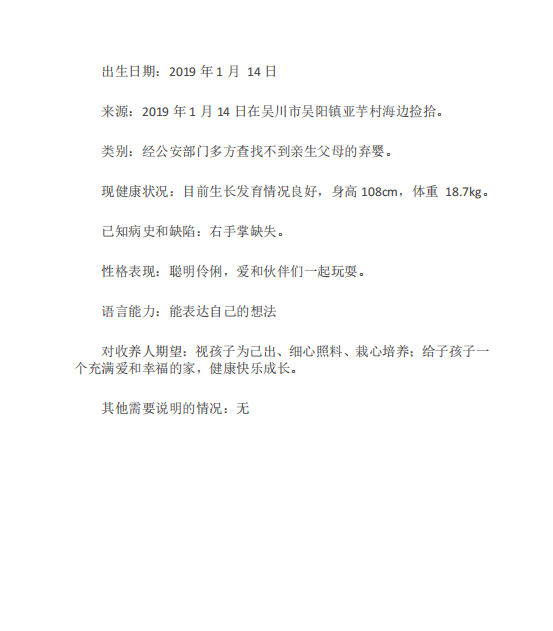 吴川市福利院可送养儿童的公告