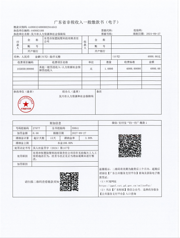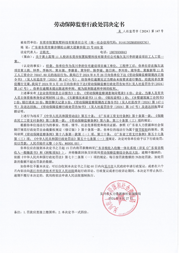 劳动保障监察行政处罚决定书
