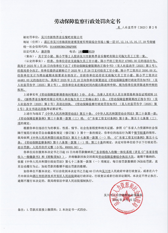 劳动保障监察行政处罚决定书