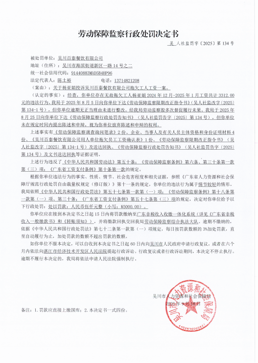 劳动保障监察行政处罚决定书