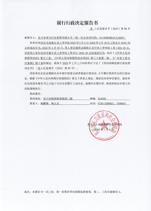 履行行政决定催告书