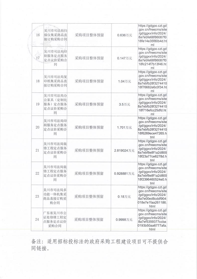 吴川市司法局2024年度面向中小企业预留项目执行情况公告