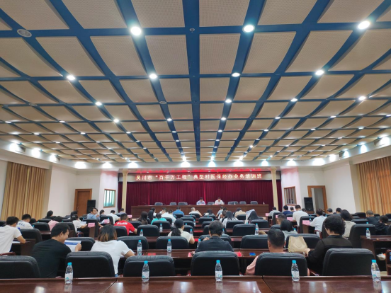 为深入学习贯彻党的二十大和二十届三中全会精神,进一步推动医保经办业务下沉到行政村,规范全市医保经办政务服务办事流程,以高效、便民的医保服务助力我市全面实施“百千万工程”,近日,市医保局在市税务局3号会议室举办了2025年度吴川市“百千万工程”典型村医保经办业务培训班。市医保局党组成员、副局长欧观平同志出席开班仪式并作动员讲话。全市相关镇(街)分管领导、公共服务办公室主任和医保工作负责人、典型村(居)分管医保工作的负责人和医保业务经办人员共65人参加培训。