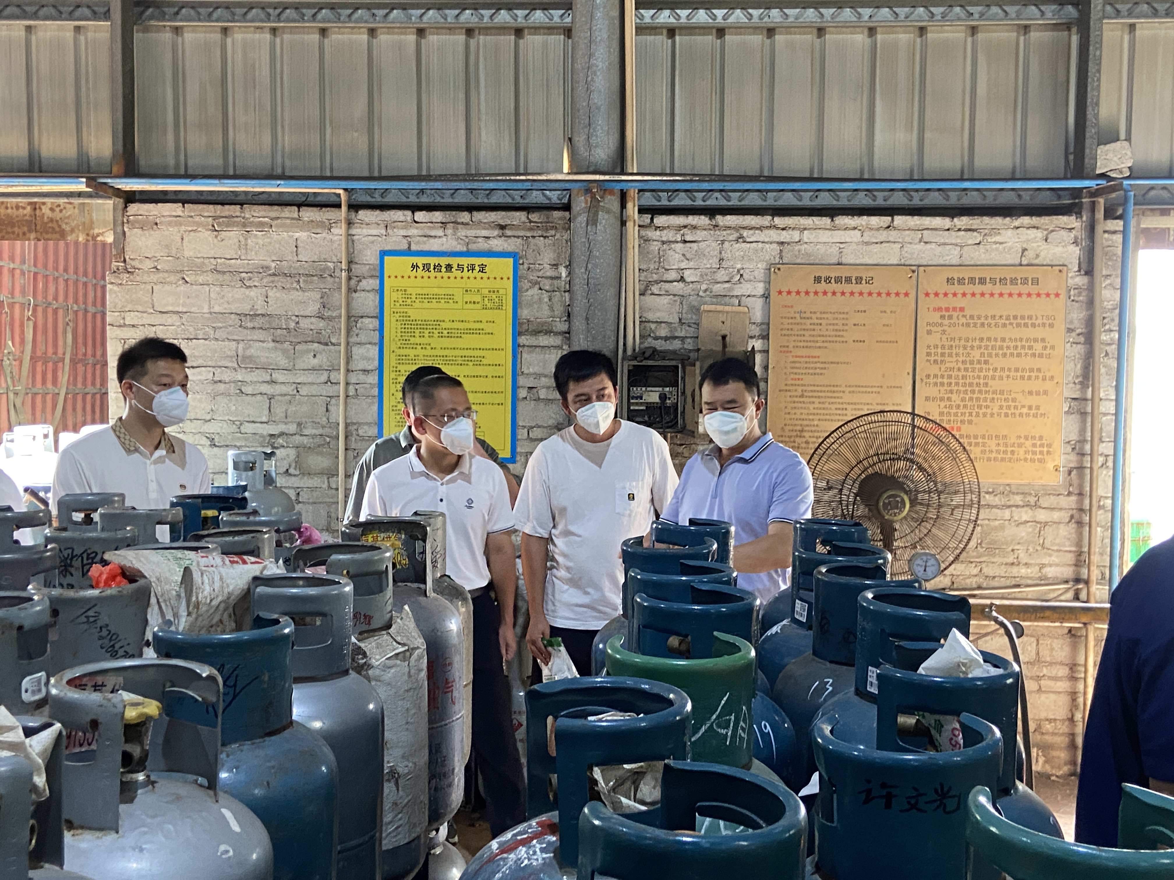 柯造一行来到吴川市恒兴石油气罐装站、吴川市粤西液化石油气钢瓶检测站有限公司,现场详细了解企业安全主体责任落实、气瓶定期检验以及信息化标签赋码建档、气瓶追溯管理、消防器材与设施的维修保养等情况,并对气瓶检验人员持证上岗及检验人员人证一致等情况进行现场检查。针对检查中发现吴川市粤西液化石油气钢瓶检测站有限公司存在的隐患问题,柯造要求市场监管部门督促钢瓶检测站立行立改,并进一步加强安全监管,严格按照安全技术规范开展检验,做到应检必检、应检尽检,为气瓶使用安全提供技术保障。同时,要求经营主体要认真落实安全生产主体责任,建立完善安全管理制度,依法依规开展燃气气瓶充装、经营、储存、运输等业务,全力确保中秋、国庆两节期间安全生产形势稳定。