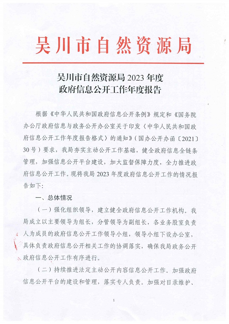 吴川市自然资源局2023年度政府信息公开工作年度报告