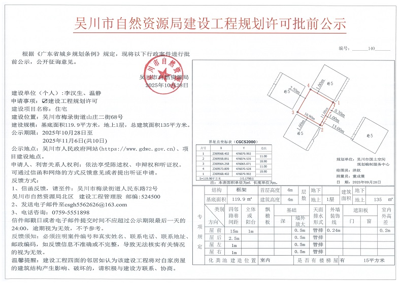 吴川市自然资源局建设工程规划许可批前公示(李汉生、温静)