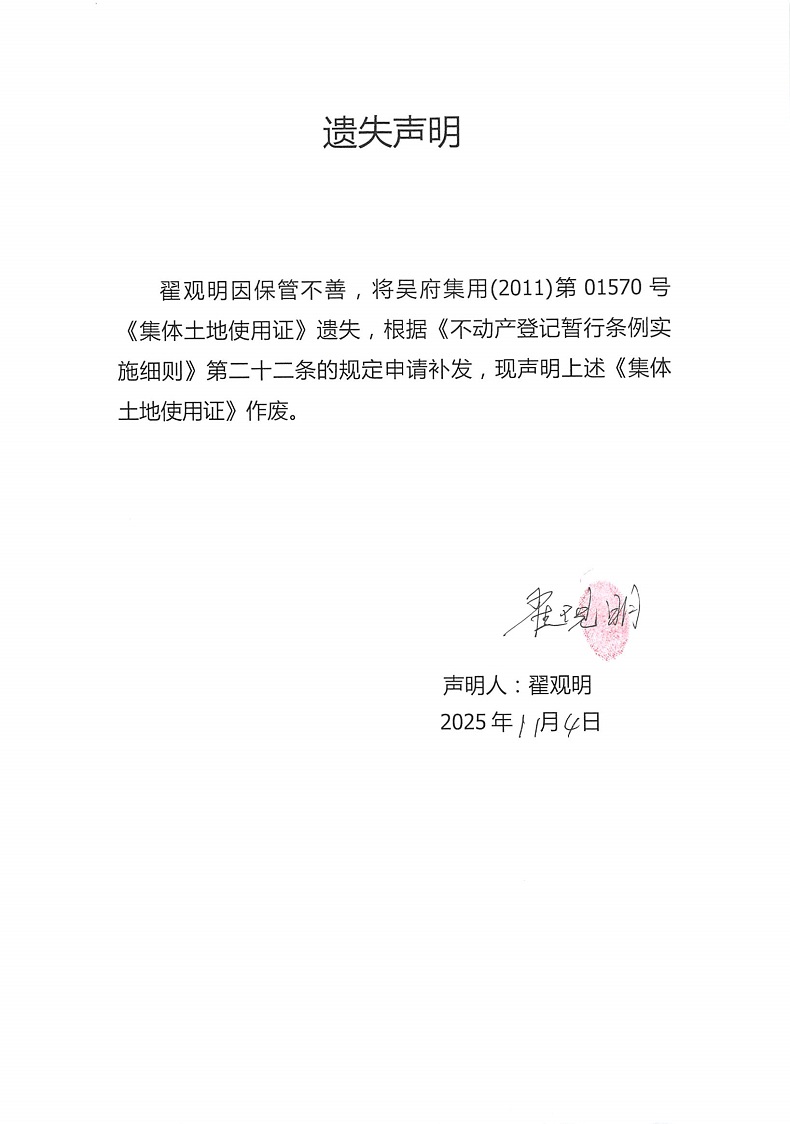 遗失声明(翟观明)