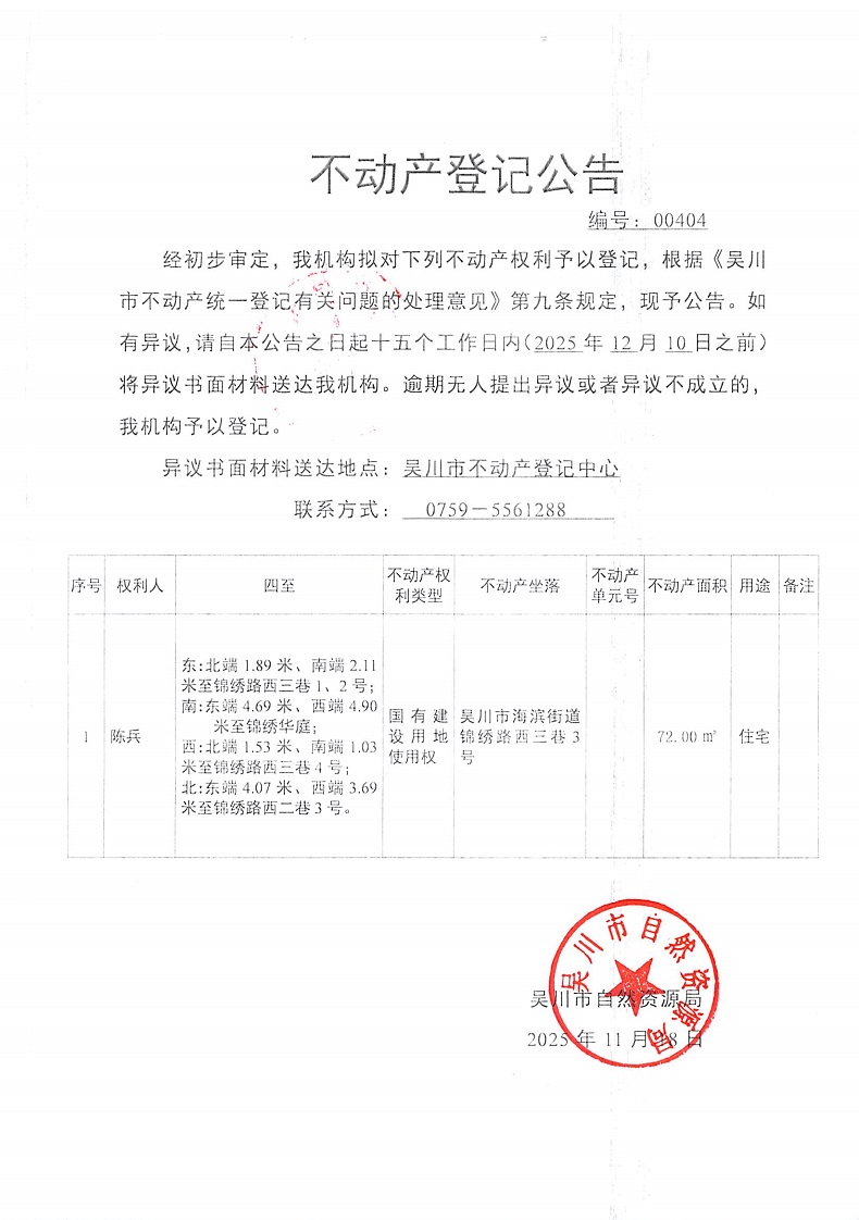 不动产登记公告(陈兵)