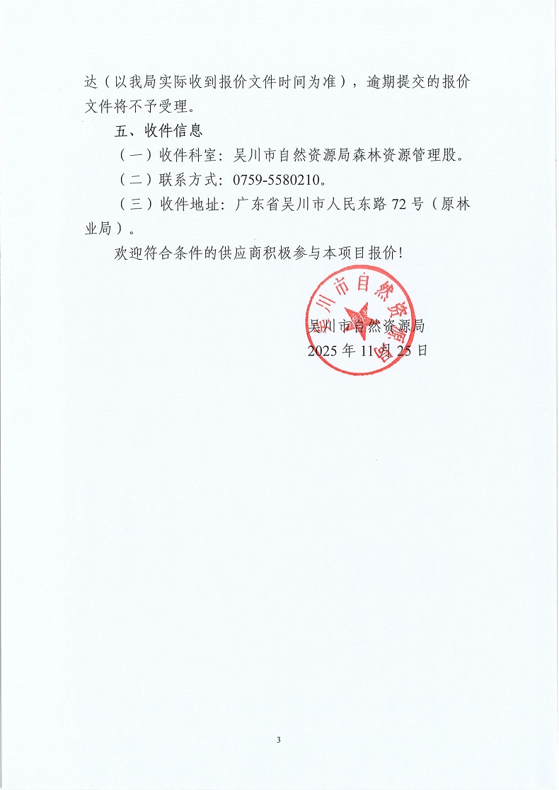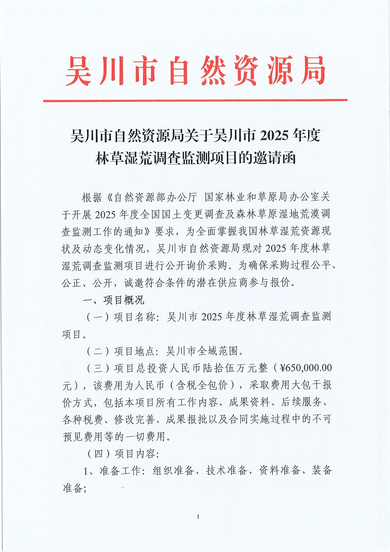 吴川市自然资源局关于吴川市2025年度林草湿荒调查监测项目的邀请函