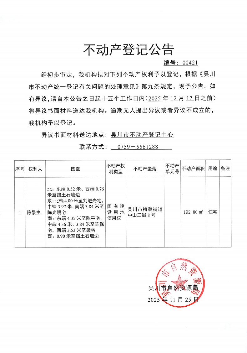 不动产登记公告(陈景生)