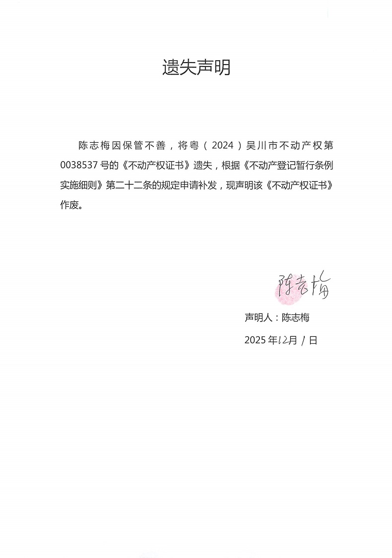 遗失声明(陈志梅)