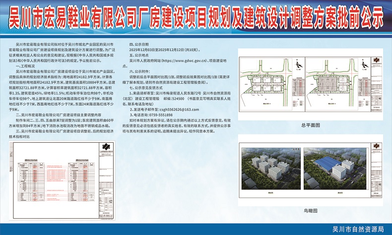 吴川市宏易鞋业有限公司厂房建设项目建设工程规划许可批前公示