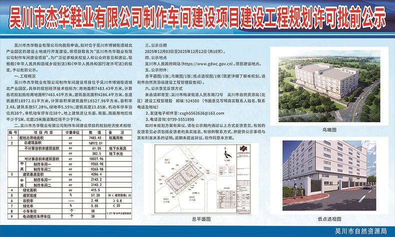 吴川市杰华鞋业有限公司制作车间建设项目建设工程规划许可批前公示