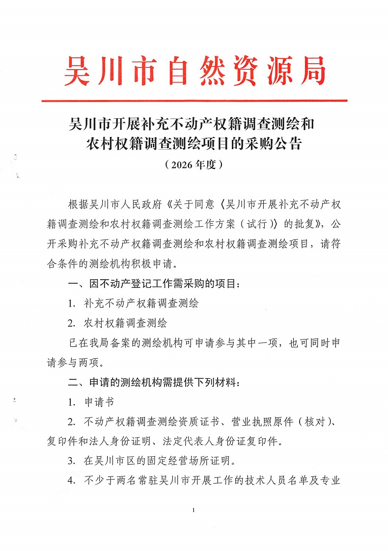 吴川市开展补充不动产权籍调查测绘和农村权籍调查测绘项目的采购公告(2026年度)
