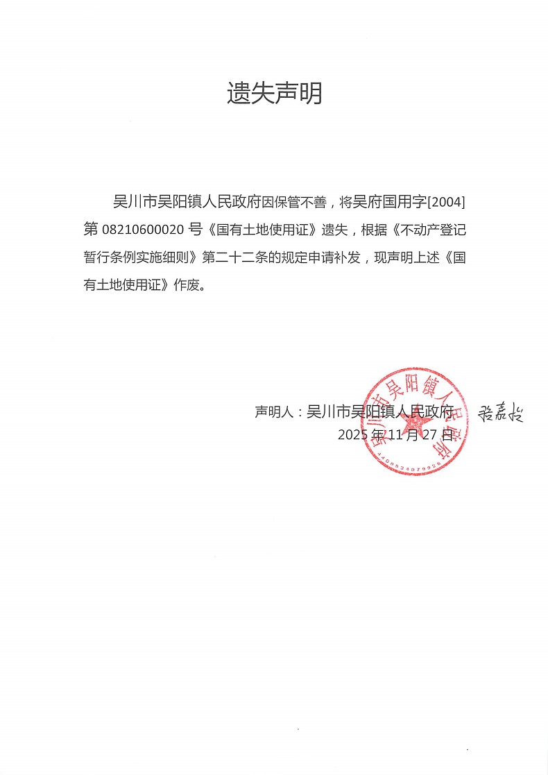 遗失补发(吴川市吴阳镇人民政府) (2)