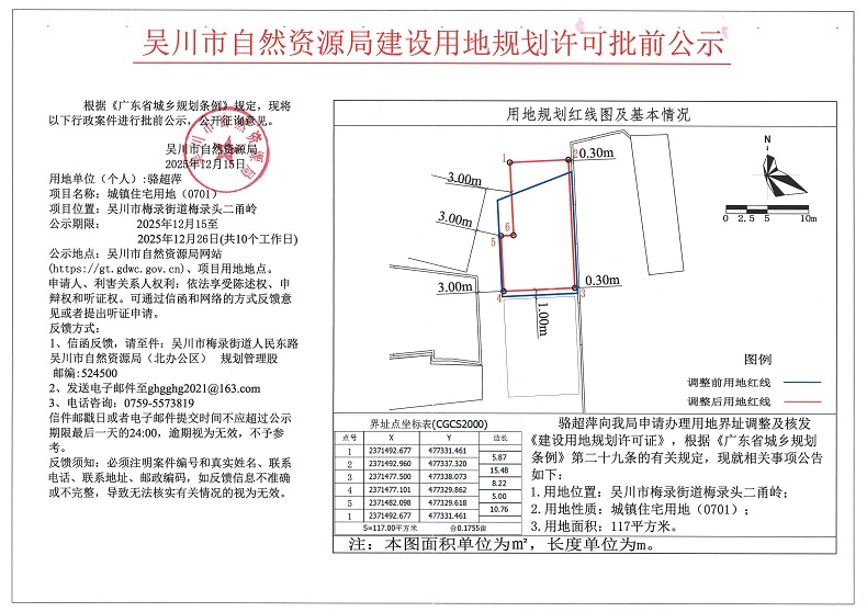 吴川市自然资源局建设用地规划许可批前公示(骆超萍)