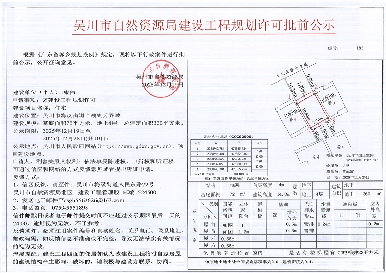 吴川市自然资源局建设工程规划许可批前公示(康伟)