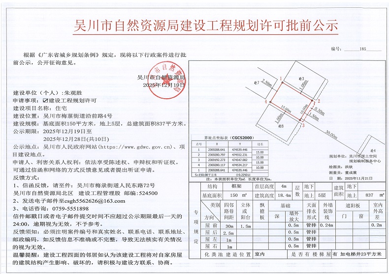 吴川市自然资源局建设工程规划许可批前公示(朱观胜)