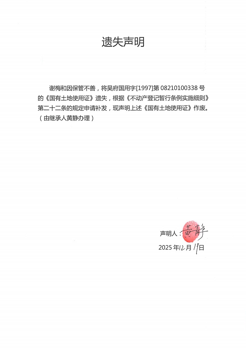 遗失声明(谢梅和)