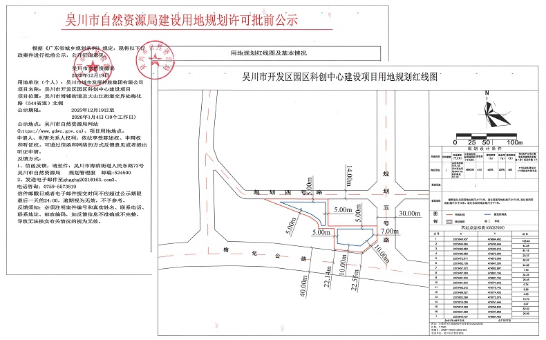 吴川市自然资源局建设用地规划许可批前公示(吴川市开发区园区科创中心建设项目)