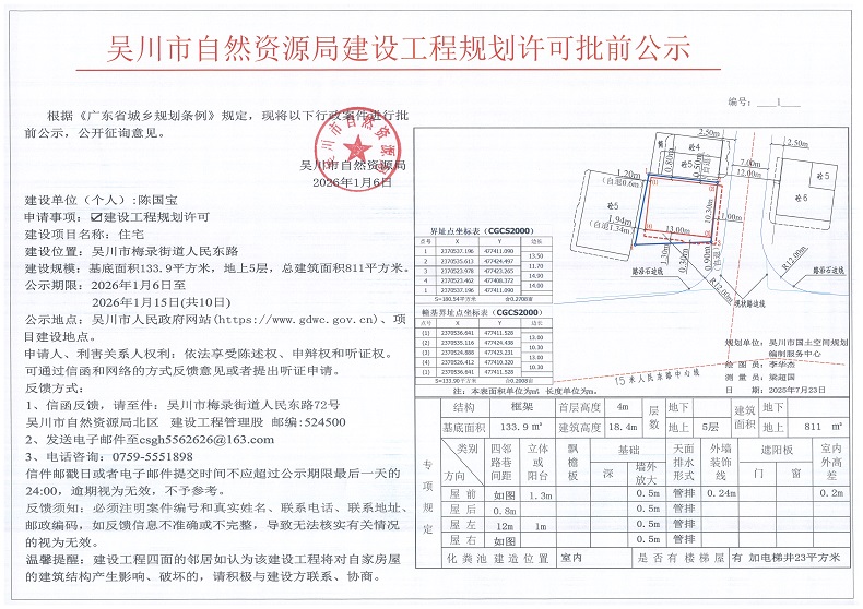 吴川市自然资源局建设工程规划许可批前公示(陈国宝)