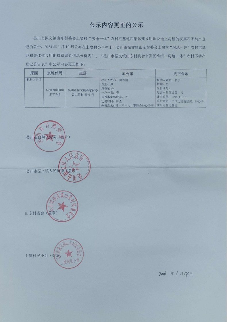 吴川市振文镇山东村委会上窦村公示内容更正的公示.pdf