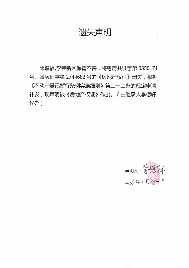 遗失声明(邱增福,李荣新)