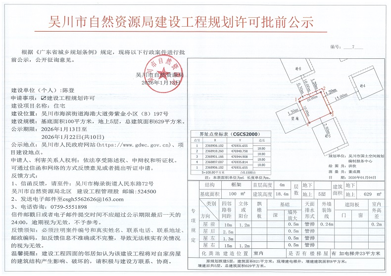 吴川市自然资源局建设工程规划许可批前公示(陈登)