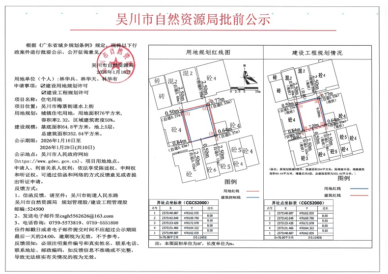 吴川市自然资源局建设用地规划许可批前公示(林华兵、林华天、林华有)